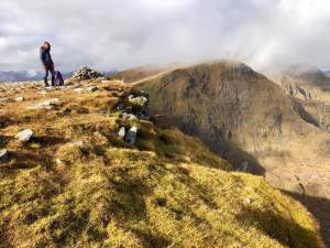 Summit of Carn Ghluasaid, the summit of Sgurr nan Conbhairean shrouded in cloud clarehappiestoutdoors October 14, 2018October 14, 2018 Published October 14, 2018October 14, 2018