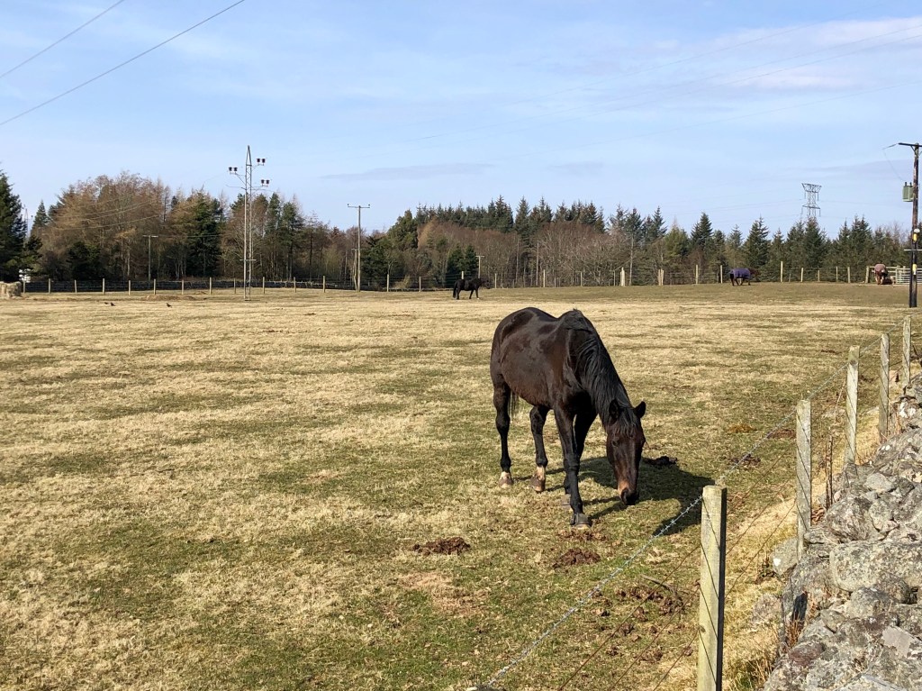 Out of the woods and across Countesswells Road, I stopped to say hello to the horses.