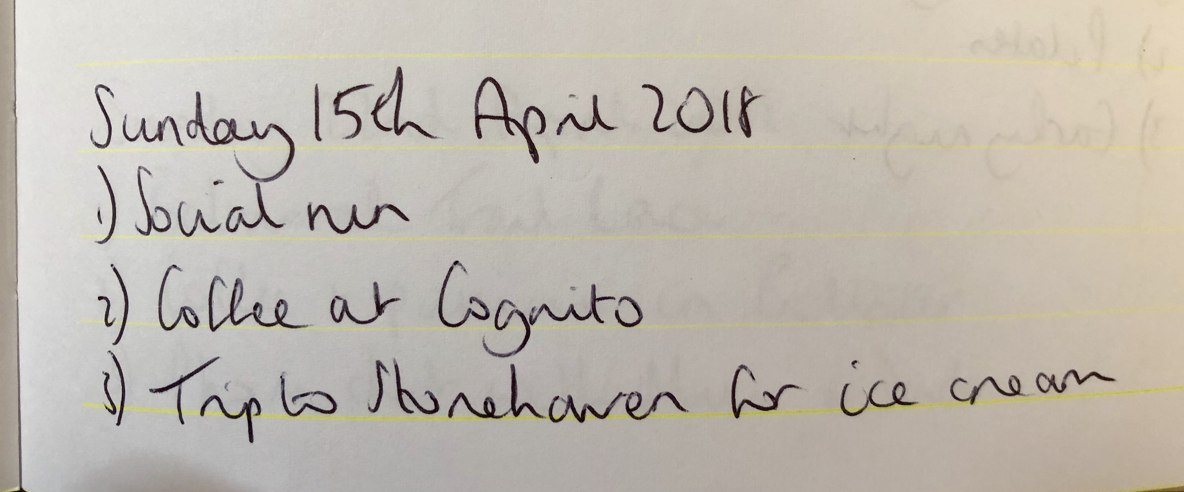 Home and showered I reflected upon the day thus far and decided to look back on previous years to see what I’d been doing then. Way back in December 2014 I decided to start keeping a journal of things I’m grateful for, noting three positives each day. These are often small, relatively insignificant things but the reflection provides some clear light at the end of each day, all the more so during life’s tough times.