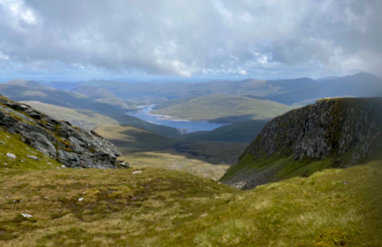 Having crossed the An Crom-allt, the real ‘fun’ began. The route guide suggested heading straight up over the heather, the gradient easing around 800 metres. This meant climbing around 400 metres. To add insult to injury, part way up the climb the heavens opened and the rain came on. Fantastic! A nice chilly downpour just to complete the experience. Thankfully it was relatively short-lived!
