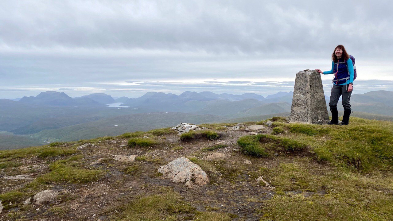 Pretty soon we reached the path we’d been targeting from afar, and being on more solid terrain again it was an easy pull to the trig point and the summit. It was well worth the effort. The views were amazing! Bruce, with his encyclopaedic knowledge of hills was able to point out the highlights.