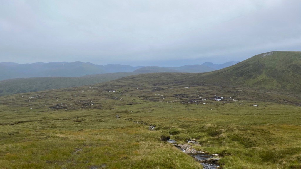 On reaching a boggy plateau with lots of lovely peat hags between two hills, we realised we’d veered off course a little. Our target required us to cross the bogs, so we hopped across as best we could, largely managing to stay out of anything too deep.