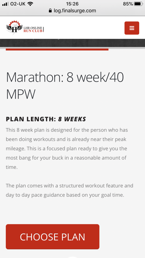 Next thing to do was find a plan to support this. Since running a successful London Marathon in 2019 off an LHR plan, I decided this was as good a place as any to start. A little more digging online and I came across an 8 week plan on Final Surge.