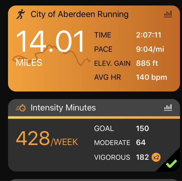 Last week saw me run a fraction off 39 miles, this week just short of 42. I plan to add a mile onto my easy run tomorrow and make the warm up on my workouts 2 miles, rather than the planned 1, in order to hit 45 miles next week. I’m also continuing to work on strength training with a running focus so hope that this will also help overall.