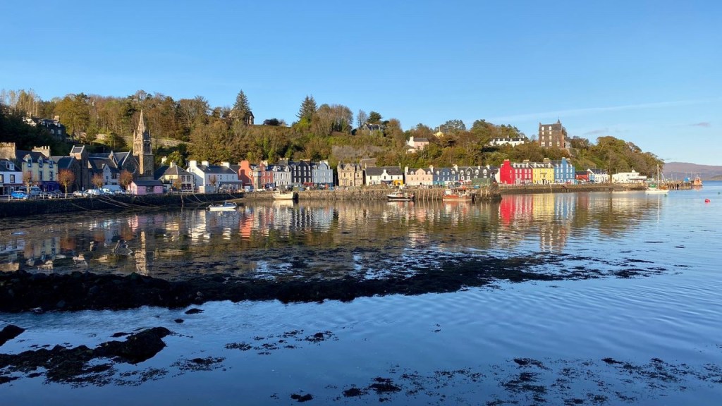 Arriving in Craignure it’s a relatively short drive to reach Tobermory, the colourful wee town of Balamory fame. Staying at the end of the village we’ve yet to see Josie Jump or Miss Hoolie. I’m pretty certain, however, that it was PC Plum we saw as we returned from our walk today. He really needs to have a word with some of the drivers – I’m assuming they’re locals given the speed they hare along the single-track roads! Quite alarming when meeting them head on at a bend!