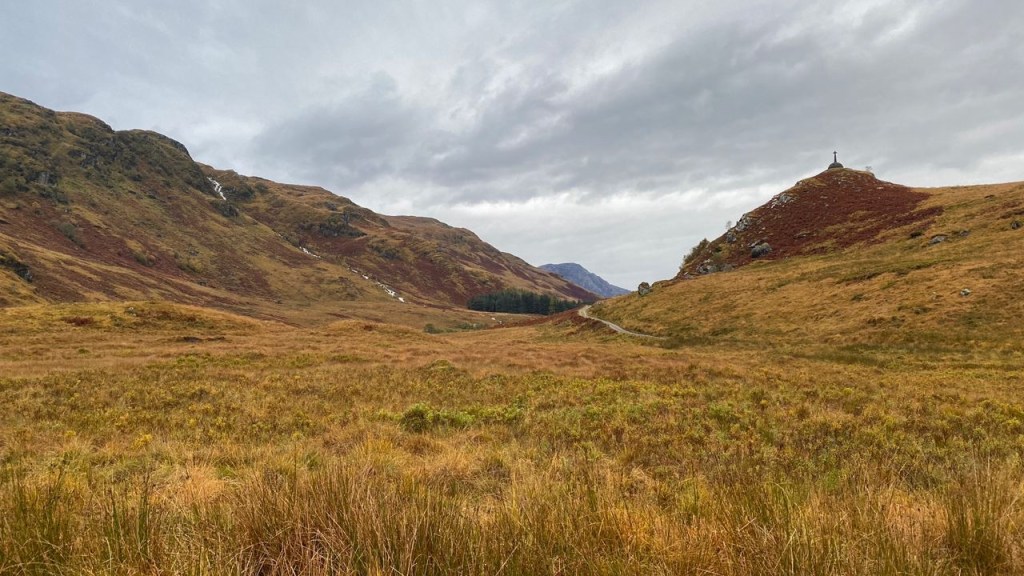 Reaching the Loch an Dubh-Lochain was a relief as the path then improved quite a bit. What was a greater relief was seeing the monument again and knowing from here we only had about 40 minutes of walking left. Even better still was reaching the road towards Inverie. By this point the rain was back on but we were beyond caring; the hard work was done.