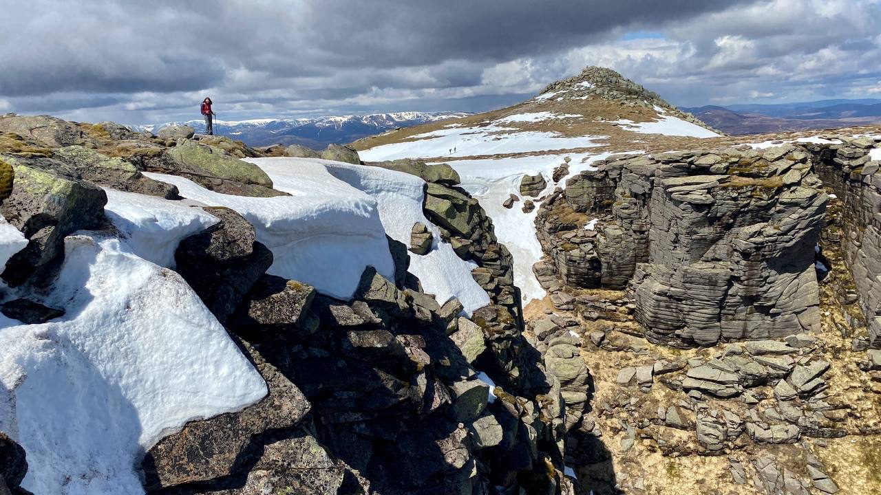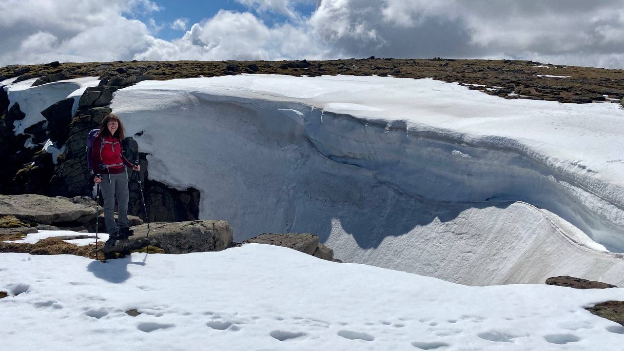 The summit has two cairns, the furthest away clearly being the highest. It’s a short, easy walk between them. Prior to this we’d seen many small cairns, not convinced we’ve seen them previously, most likely as they’ve been buried under snow.