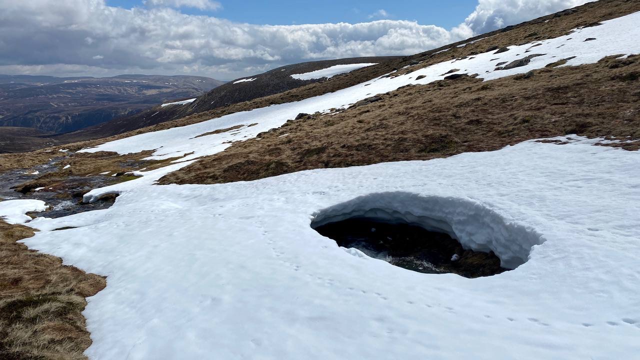 Heading down, we followed the Glas Allt path. Although slightly longer than an out and back, this is usually worth it as it takes in the falls. Descending today it was very apparent that the thaw was increasing the pressure on the stream, lots of white water and a good, strong flow.