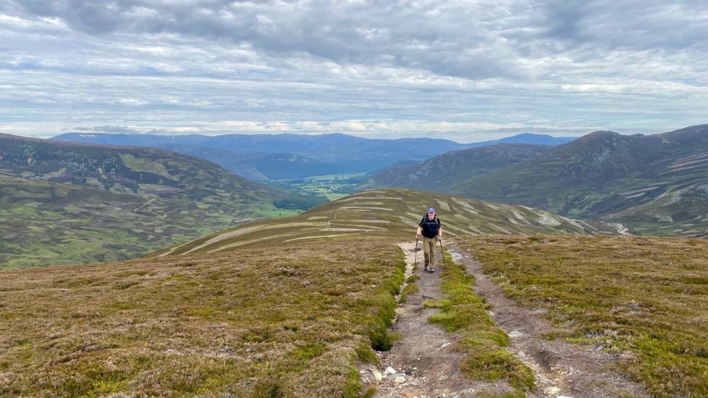 Walking out, we followed the line of the Callater Burn on a good landrover track into Glen Callater. After a mile we turned and began the steep ascent for the day, again staying on a good track. This continued to ascend more gently to Sròn nan Gabhar.