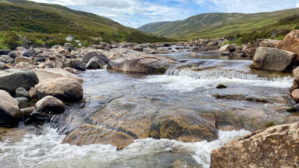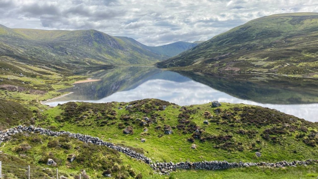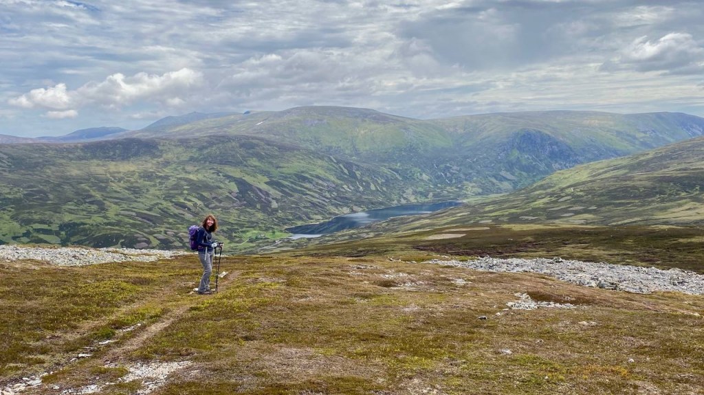 Stopping at Braemar for a comfort break I was happy to chat to some runners about to embark on the Lairig Ghru race (and glad that I was headed for the hills instead). Continuing down the road we parked up at Loch Callater, quieter than last time we’d passed it. Maybe things are settling down now, the manic surge after ‘release’ beginning to wane?