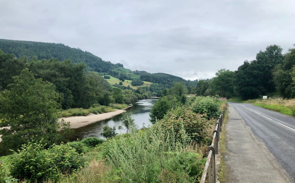 Setting off from Aberfeldy, I headed through the town centre and followed the road, running alongside the river, past the caravan site, and seeing more people than I have all week.