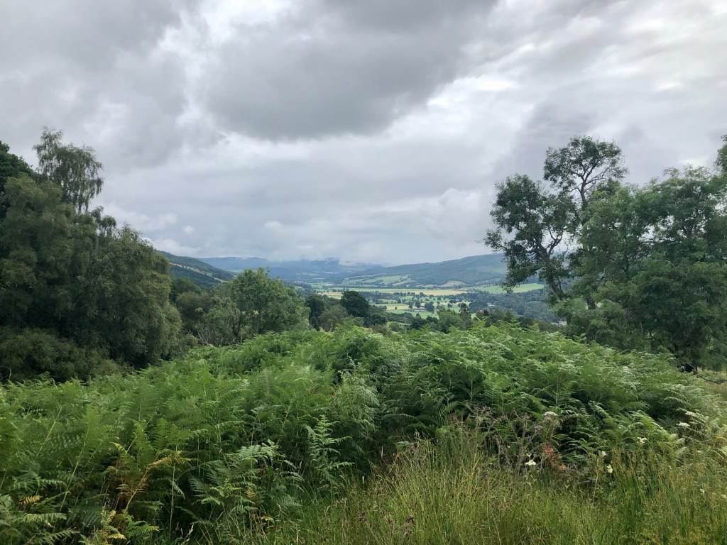 Leaving Grandtully by a little signposted path, the climb began on a good path and was initially manageable. However, as it progressed up past the golf course, it got steeper, narrower and tougher underfoot.