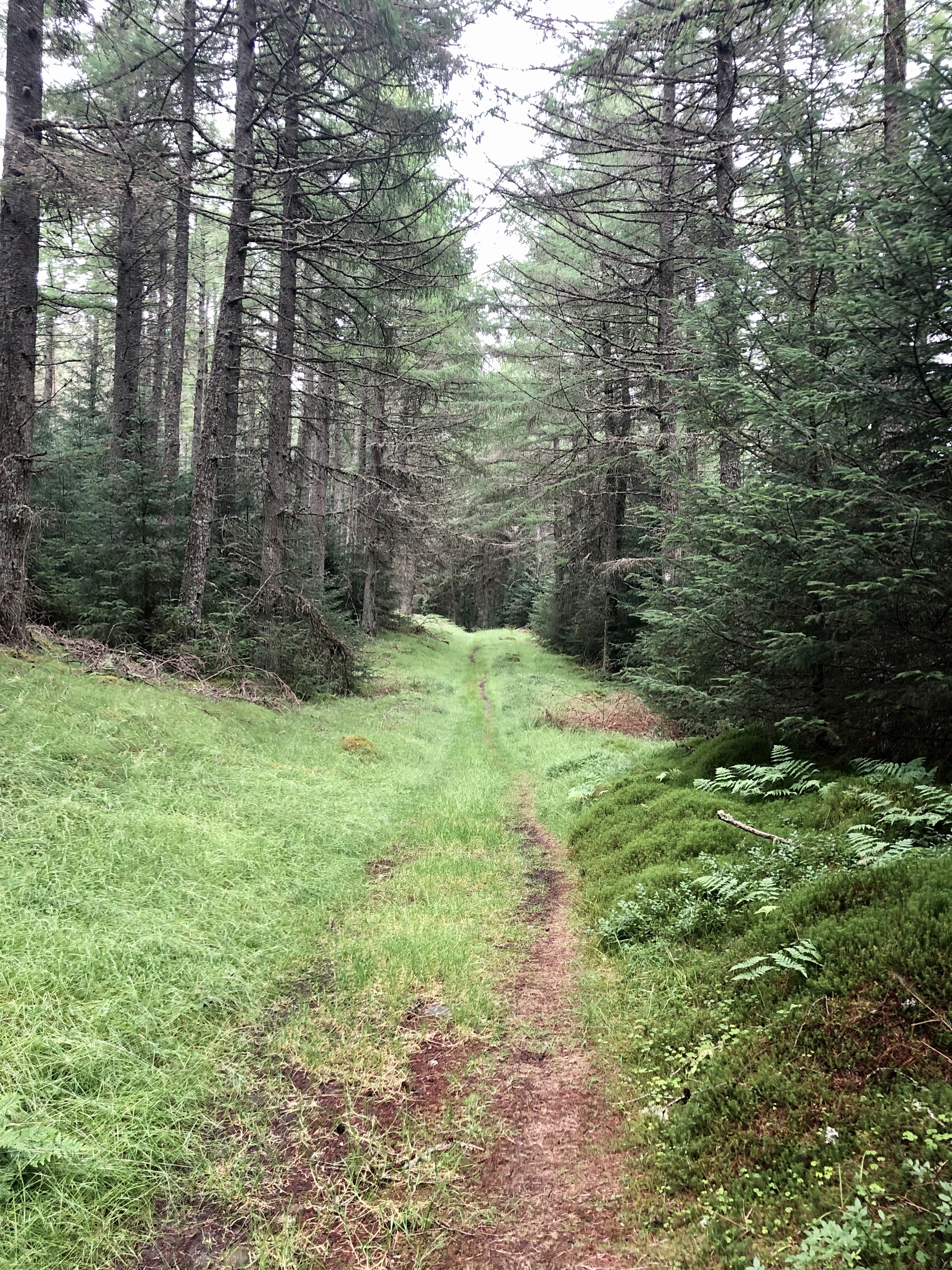 Finally reaching the high point, I crossed an open area of moorland with a single track path. When I finally came upon a forest road I was very excited! I could properly run again.