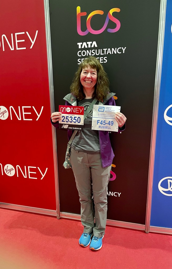 Moving next door, I visited the Expo. Good For Age runners had designated collection points allocated and I had the pleasure of collecting two numbers: one for the London Marathon, the other for the inaugural Abbott World Marathon Majors Wanda Age Group World Championships. This was very exciting: the main number for my front, the other for my back.