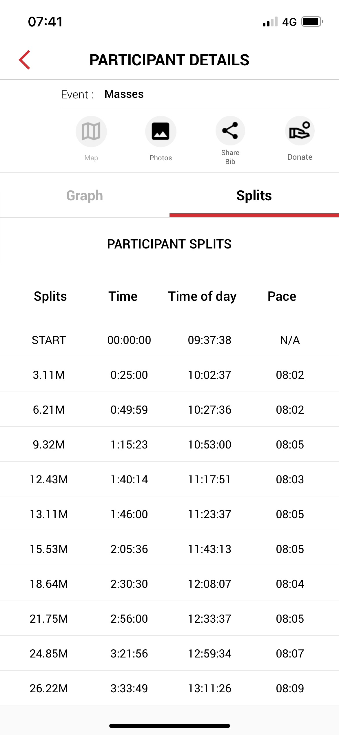 I tried to do as suggested, run relaxed to 16 miles, then focus on getting to 20, finally taking it mile by mile until the end. I enjoyed the crowds, the cheers and particularly the music. Hearing bands, pipers, drums and DJs really lifted my spirits and when things got tough I had to fight the temptation to just stop and listen.