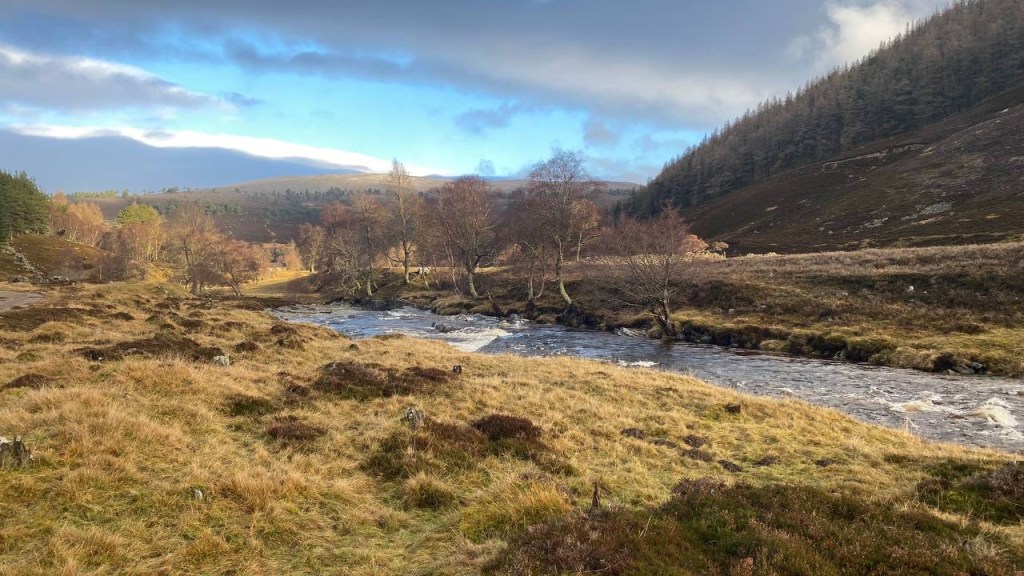 With access to a couple of munros, the large parking area at Inverey is often busy, particularly at weekends. Today, Monday, it was pretty much deserted.