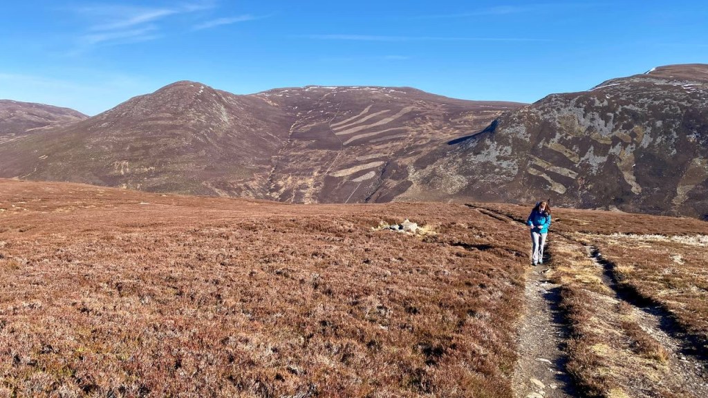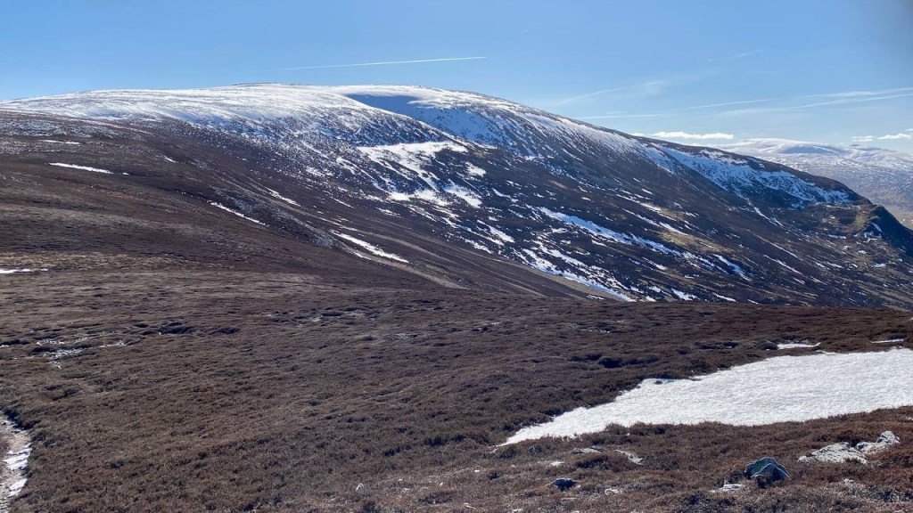 One of our favourites, today saw us return to Creag nan Gabhar. We were unsure what to expect as the snow appeared to have shifted quite a bit. Mildly optimistic that we might find some on the descent towards Loch Callater, we set off fully loaded with crampons, ice axe and Kahtoolas! Looking back, you’d wonder why we’d bothered!