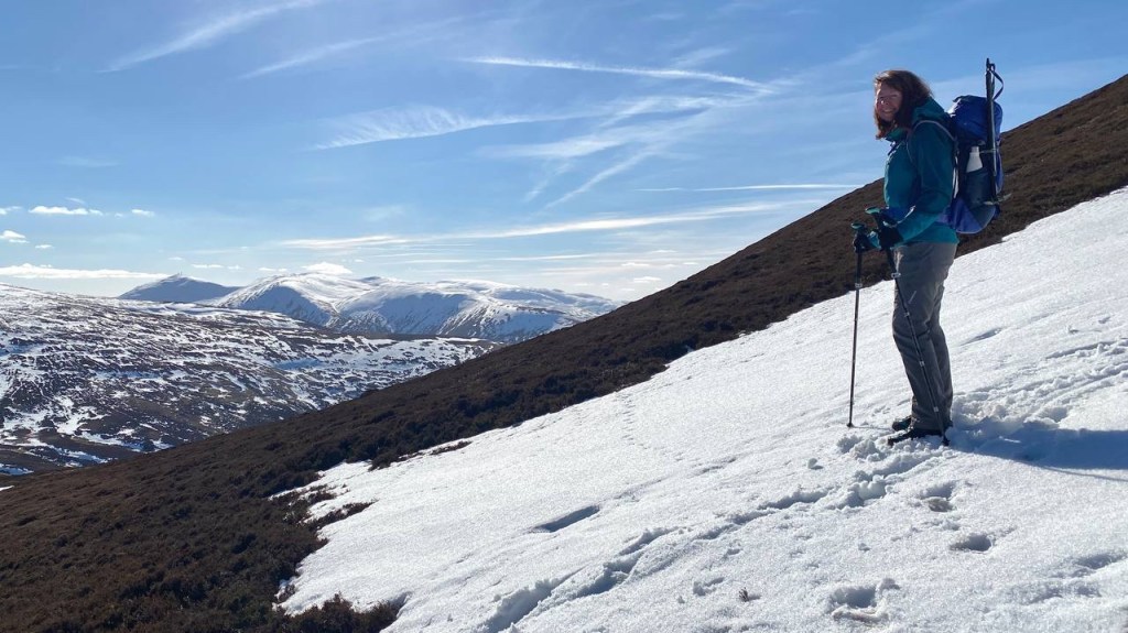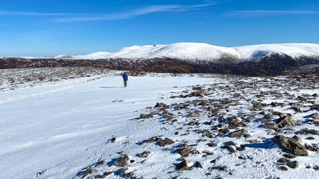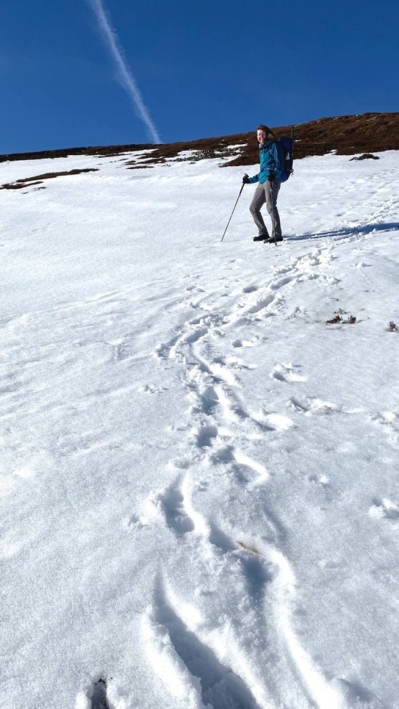 Further up towards the summit of Creag nan Gabhar we encountered a little more consistency in the snow cover. The heather was still popping through in places but there was a little bit of a crunch to it which was quite satisfying!