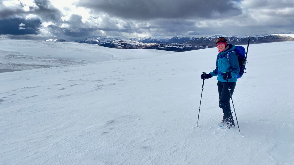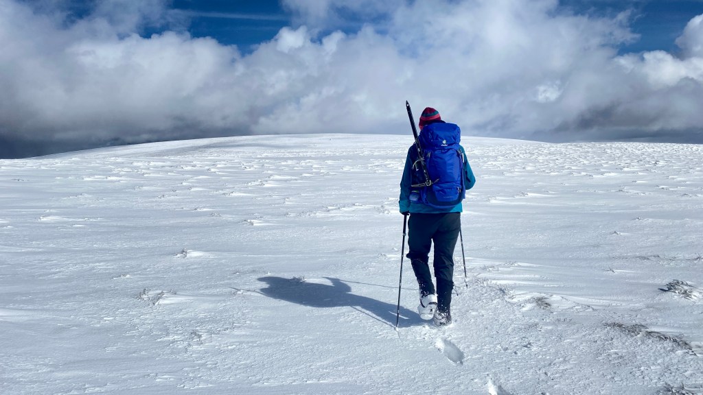 The snow line was around 700m, the freezing line slightly below that, and we had to move off the track and onto the snow covered heathery ground as a result.