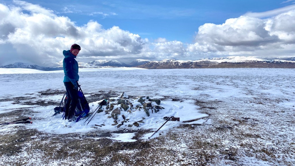 The summit was unremarkable with a tiny cairn to show that we’d reached our highest point. The views, however, more than made up for it! I can see why these munros may not rate highly, but on a day like this they’re perfect!
