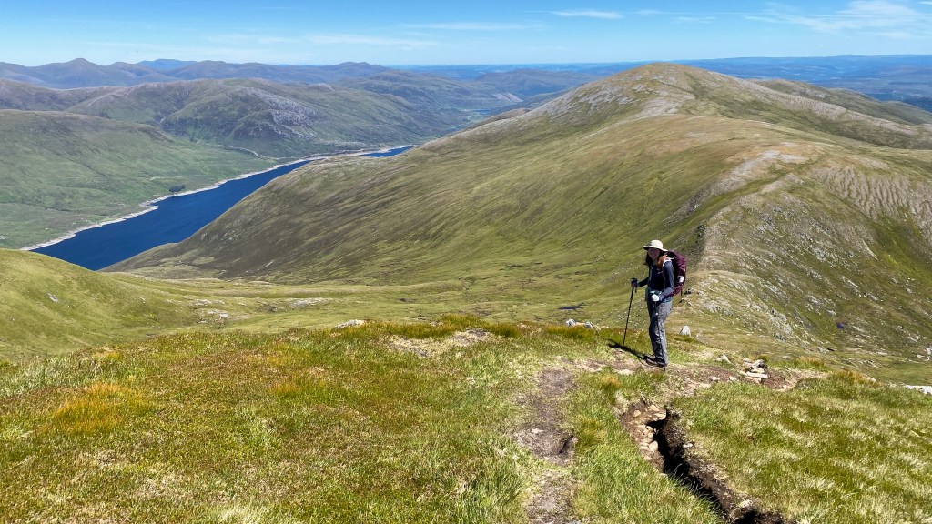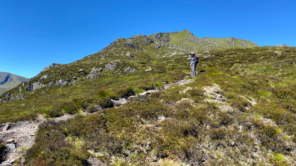 Our first hill of the day involved a gradual pull up from the main path, initially continuing to follow another clear path. As we progressed there was an option to follow the stream or head up the Creag na h-Inghinn ridge. There was no contest, the ridge path looking very appealing.