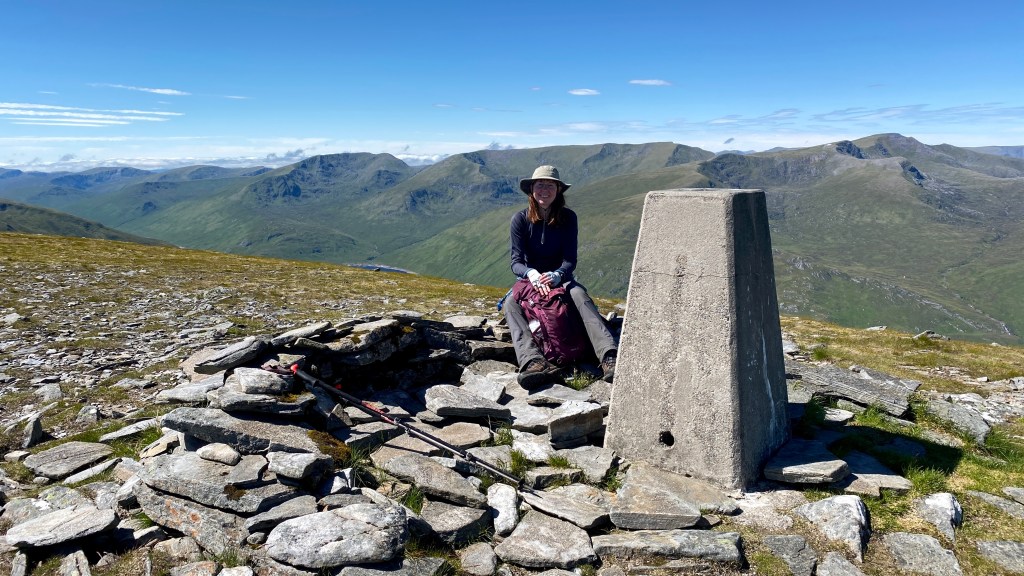 Finally we reached the summit of Toll Creagach that had both trig point and cairn, stopping for a short break.