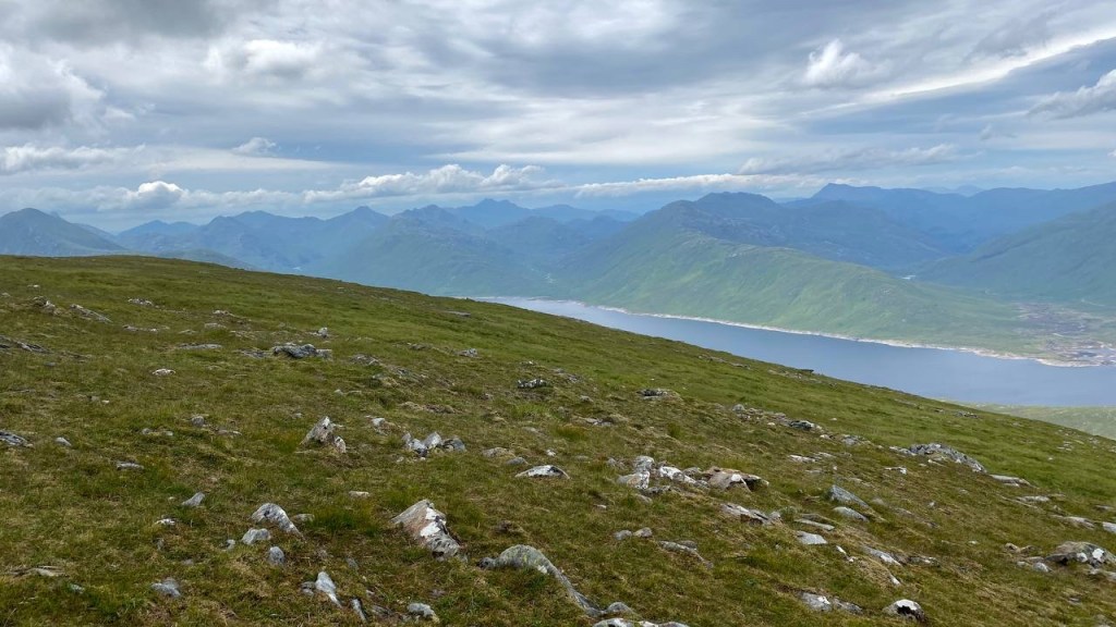 Having parked at the Loch Quoich Dam the route looked promising – a gentle meander up alongside the shores, easy up a long steady ridge, then a final sharp pull to the summit. That didn’t look too challenging! The reality however was a little different …