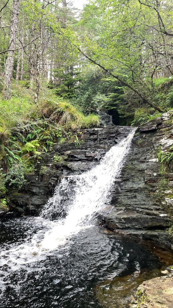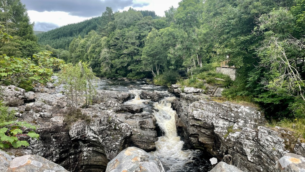 I ran down, a little gingerly at times due to the steepness of the path, hearing the noise of the traffic from the road below heralding my arrival at Invermoriston. Having reached my destination, I headed for the coffee shop to enjoy lunch. Not wanting to outstay my welcome, check-in not being until 4 pm, I took a leisurely wander down to the Invermoriston Falls, spending time walking the wee trails.