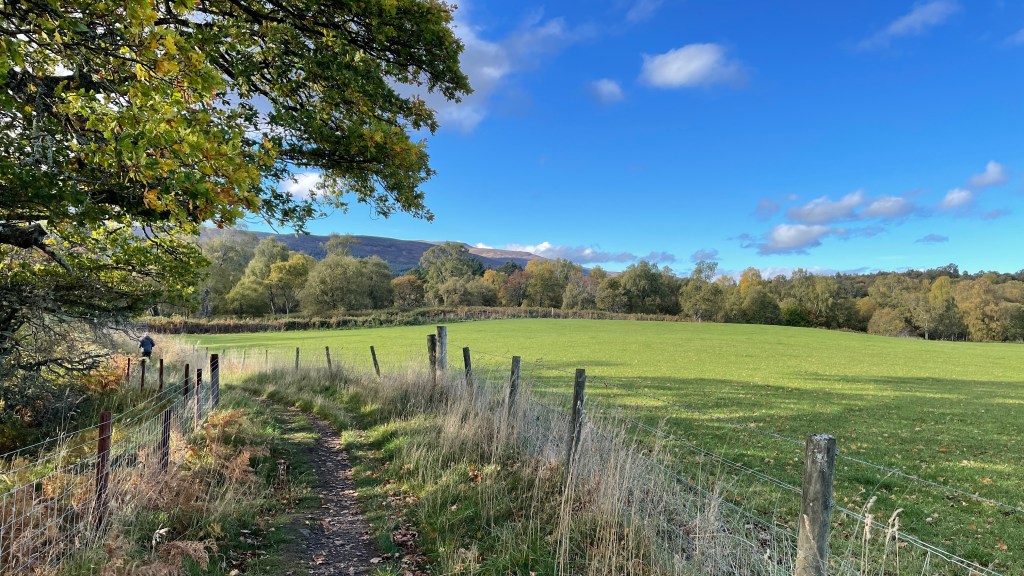 We also met some folks headed for the water with their paddle boards. It appears there are many access points to the loch. The trail cut away from the loch further along for a brief section. We caught views of Morrone here.