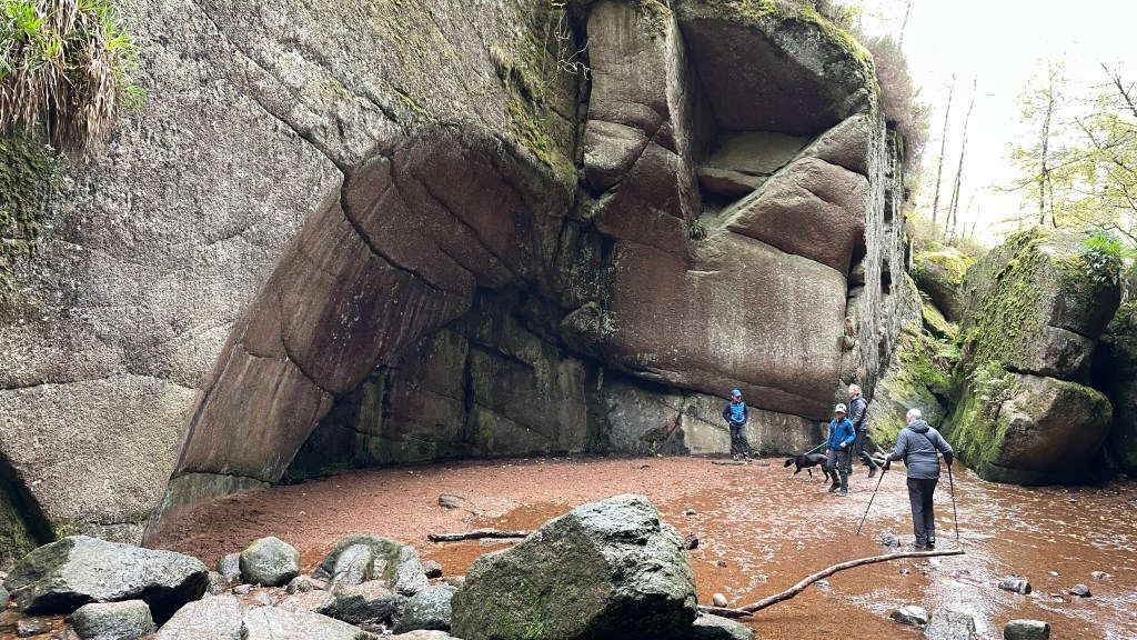 Finishing our walk round the loch, we continued through the car park to walk the short distance to Burn O’Vat. There we headed over the rocks and into the vat. How accessible this is I’d imagine might be linked to how much rain has fallen, but we had no issues.