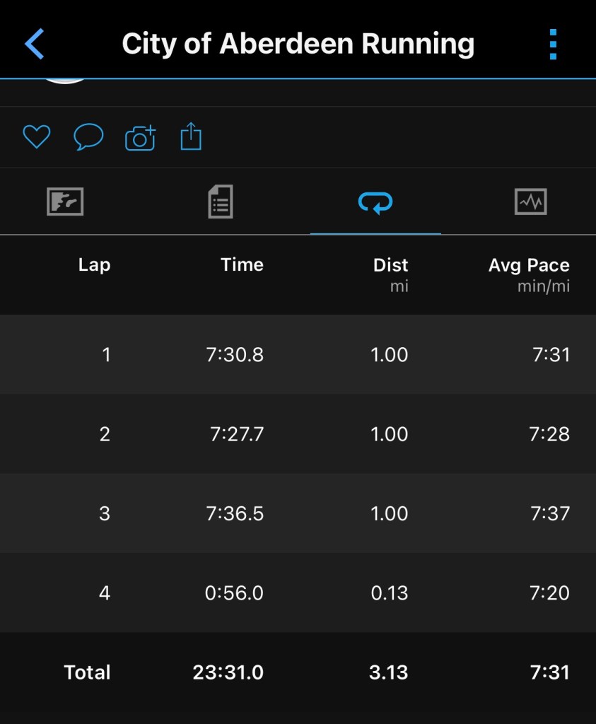 I felt like I was running within myself. It was definitely harder than I’d usually go, having become quite fond of 9 – 10 minute miling, but at no point did I feel like I was ‘eyeballs out’. I was therefore pretty chuffed to finish in 23:30. Most definitely something to build on.