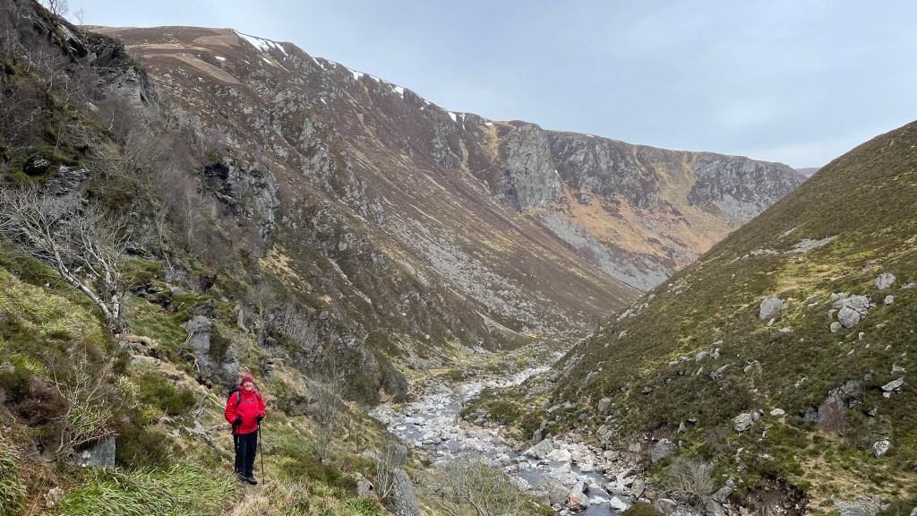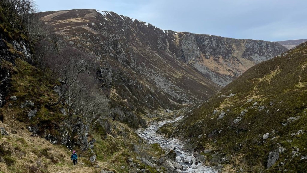 The path is narrow as it follows the Water of Unich, fairly steep drops down. Sadly, this is subject to quite a bit of erosion and there were a couple of places where the land had slipped making it a wee bit tricky to stay on anything resembling a path.
