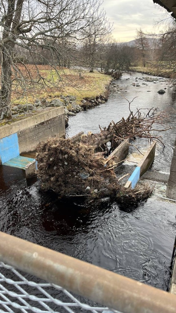 It was sad to see trees down along familiar roads, forests decimated after storms over the last year and still in the process of clearing. One tree that was rather spectacularly down was blocking the river gauging station. We were intrigued as to where it had come from.