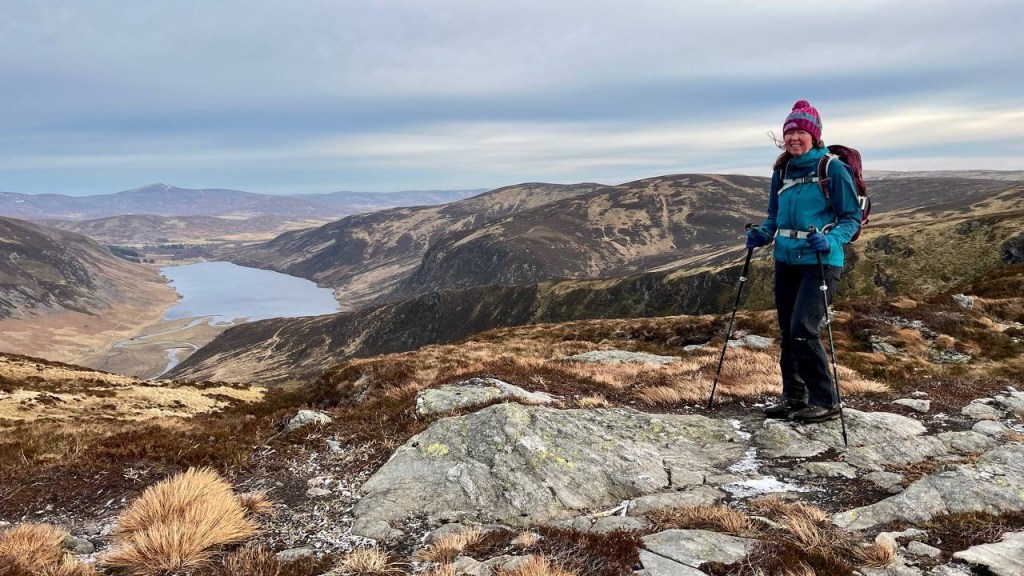 As it transpired, the wind was not as bad on the flat plateau of Cairn Lick, although it was still chilly. We enjoyed the opportunity to look down on the loch and relished the feeling of being part of something bigger than us.