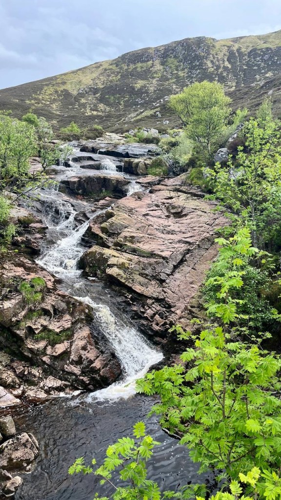 With the dry conditions of late the falls were pretty tame. While disappointing to lack the spectacular torrents that a period of rain would produce, the upside was that the surrounding ground was pretty much dry. There was evidence of boggy bits as we climbed but we remained dry and mud free, where usually I’m clarted in dubs with the least hint of a bog!