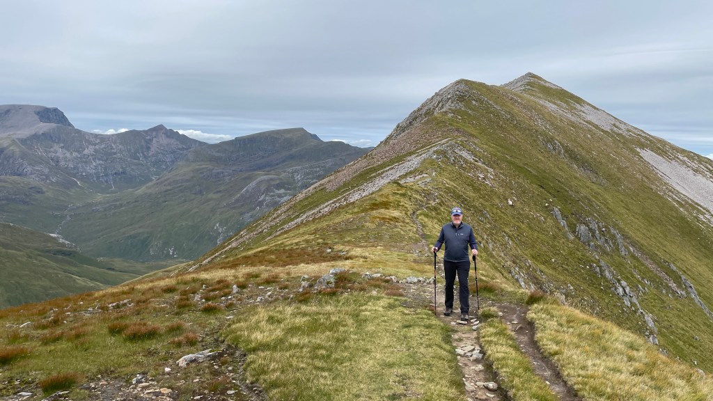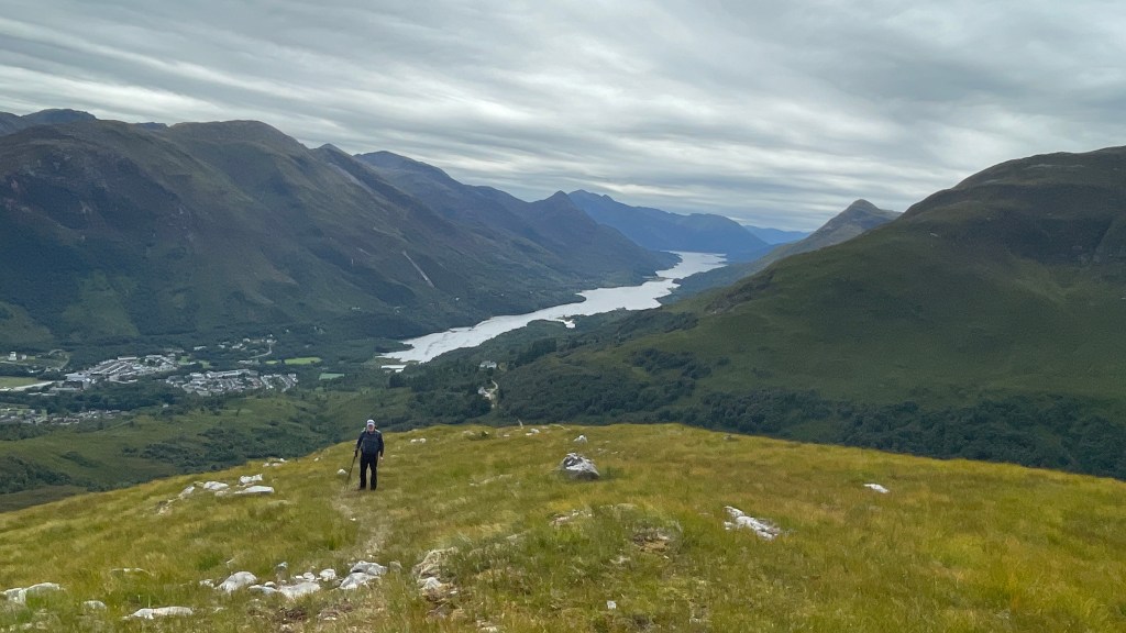 The ridge that led along to Binnein Mòr was for the most part wide and grassy. As we got towards the summit itself, the path became steeper, but still felt okay.