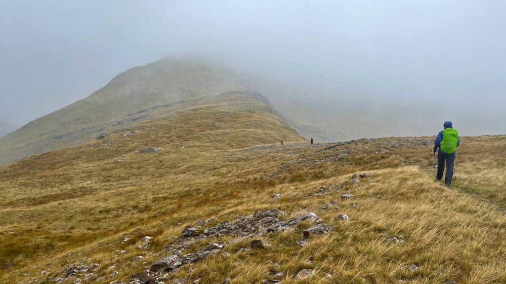 It was an ‘interesting’ hill. We’ve both previously climbed it but neither of us could remember anything about it; no surprise there as far as I’m concerned but Bruce is usually reliable on this front. It transpired to be pretty easy in terms of navigation, but was also one of the busiest hills we’ve done in a very long time! Our conclusion was that we’ve never seen so many people on a munro apart from Ben Nevis or Ben Lomond! The benefit of this was there were some interesting characters and stories to meet and be heard along the way.