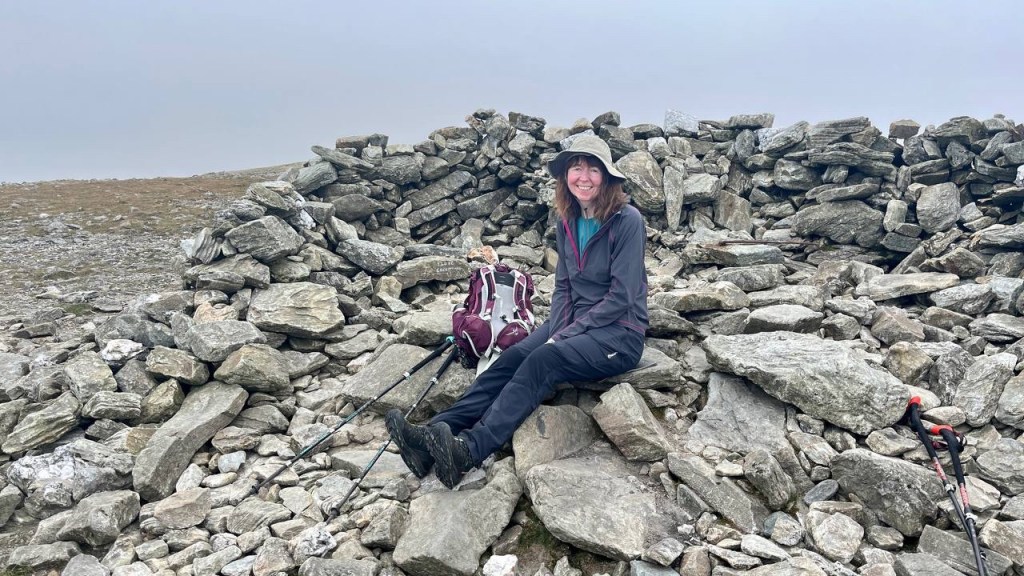 Reaching the huge cairn that isn’t actually the summit, we found a couple of our group who went on while we waited there for others to join us once again. The cairn provided a fine shelter from the wind until it changed direction once more.