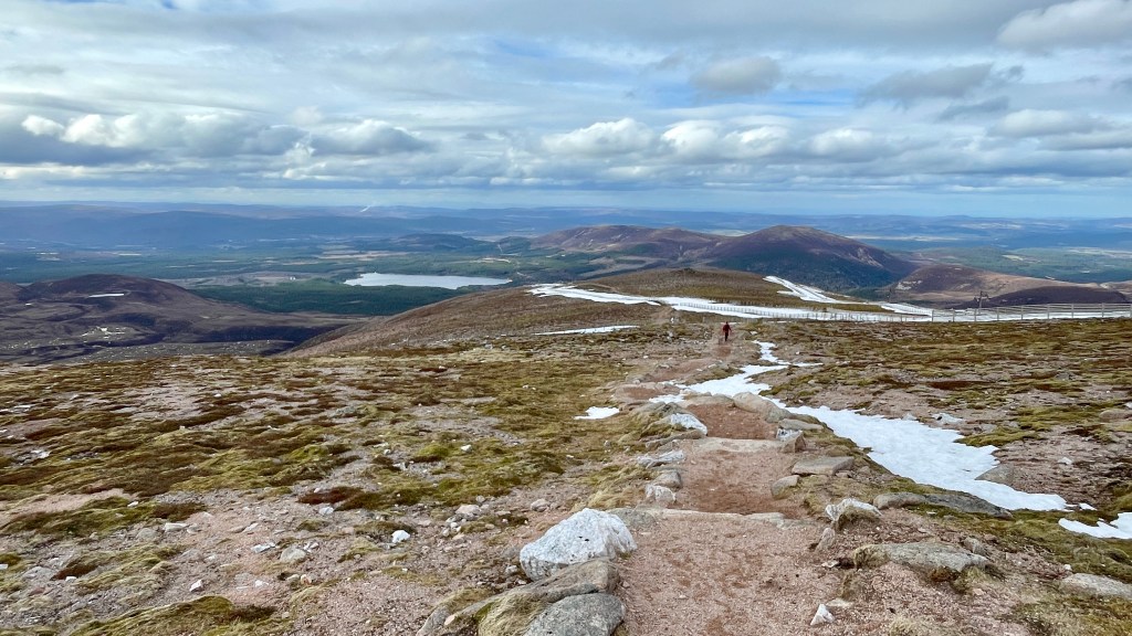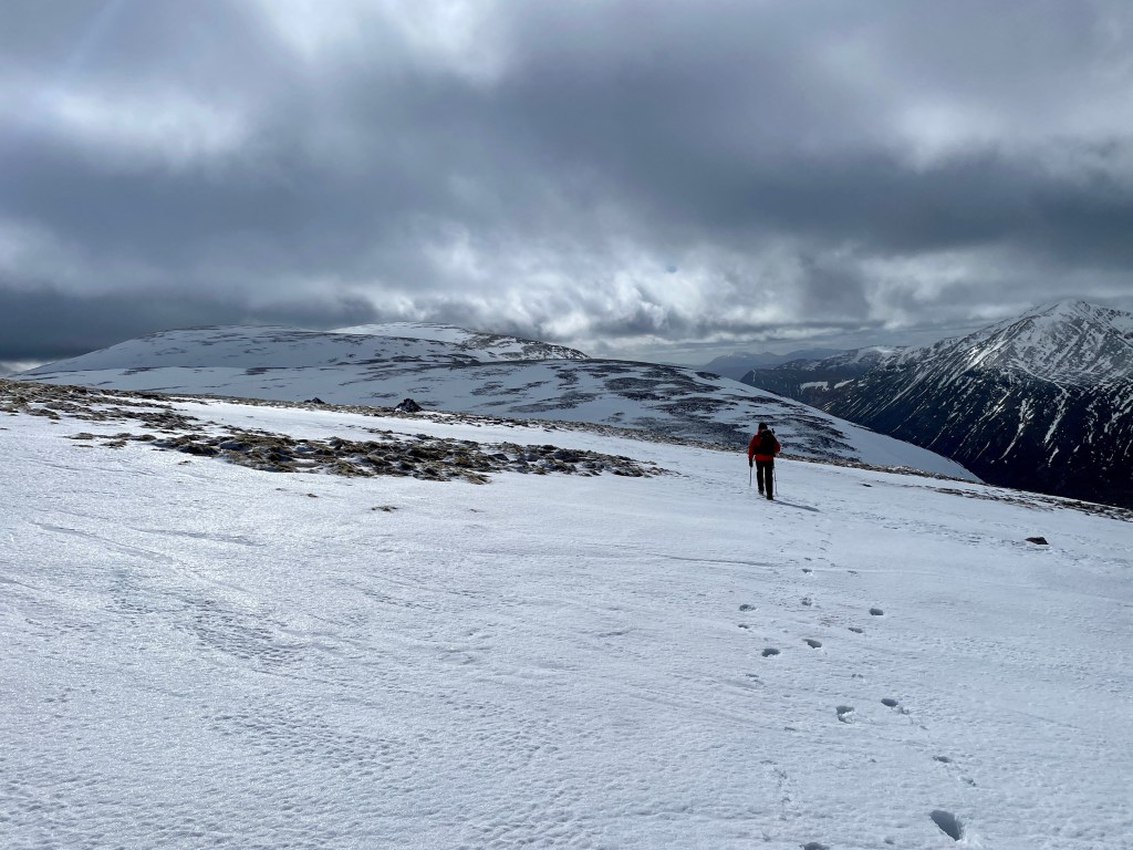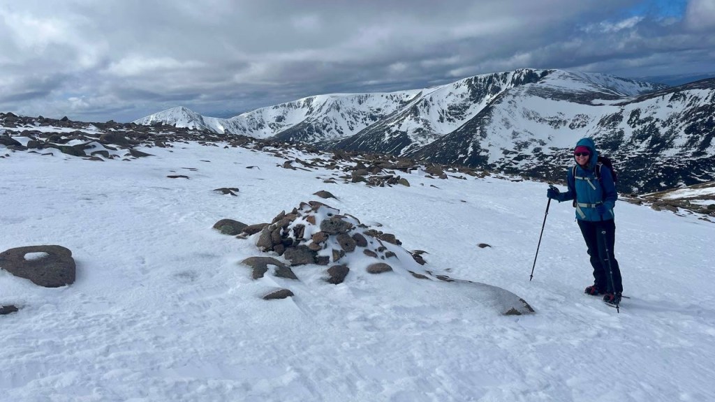 The wind picked up as we crossed the plateau, Macdui looking a lot closer than it was. A series of small cairns supported with navigation, these would most definitely be welcome on cloudier days!