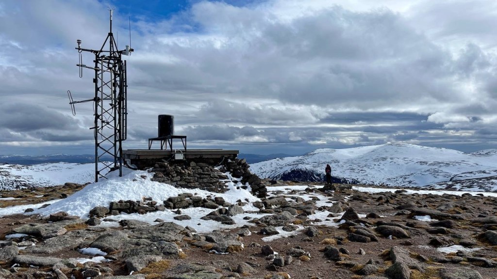 Reaching the top Bruce joked that we were on the wrong hill as the weather station is reminiscent of Morrone. Joking aside, the views were so clear we could actually see Bennachie in the distance! We chatted with another couple who arrived shortly after us having come up from the ski centre. They were looking for ptarmigan, not something we’d seen on this walk.