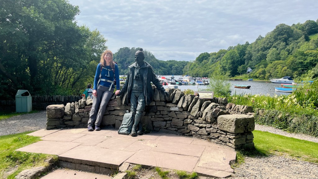 Suitably refreshed we set off on our way once more, stopping off at the statue of Tom Weir for a photo.