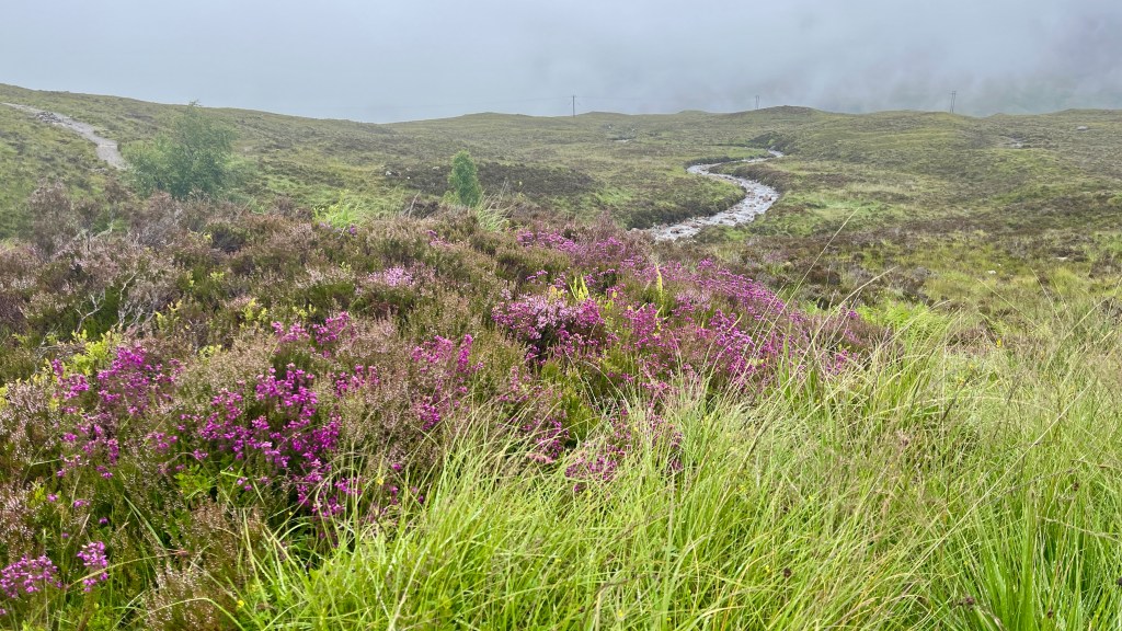 We headed towards ‘the Buachaille’, aka the shortbread tin mountain. We’d seen it as we left Glencoe, relatively cloud free, but as we made our way towards the Devil’s Staircase the rain came back with a vengeance and the waterproofs were back on – again!