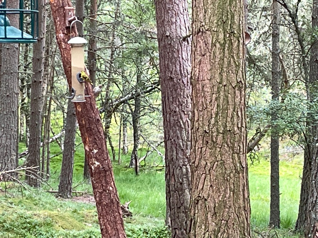 Having not ventured far at all I came across a bird hide so had to stop for a look at the action. There are some feeders out to attract the birds and red squirrels and a regular feeding slot at 11 am; being around that time I stayed and chatted to the local folks that came out to top up the feed. I saw siskins and pigeons aplenty, but sadly no squirrels, tigers or bears, even at feeding time!