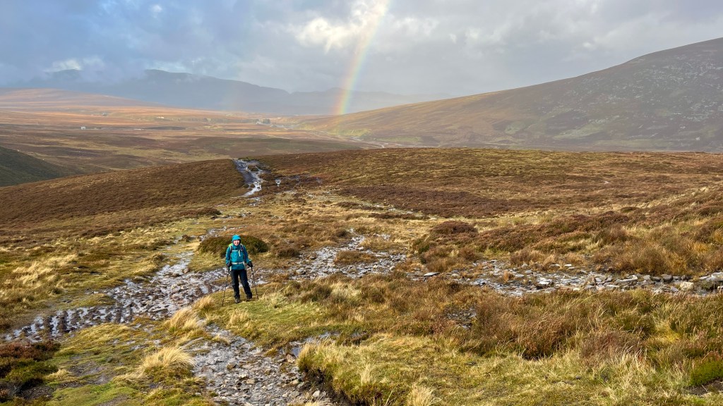 As we headed up the less defined track we crossed sections that were boggier, the rainfall of the last day draining off the hillside. We did our best to avoid the worst of it, as had many others before us, the downside of this being the resultant erosion and path width increasing to be more like a motorway than a track up the hill.