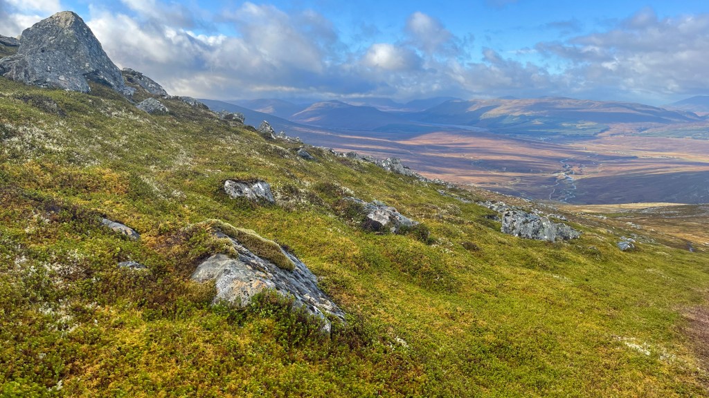 Turning off the good track, we began to ascend the path to Meall Chuaich. The distance on my watch quickly led me to realise that the rounded lump that had appeared tantalisingly close was not the top of the munro. That was slightly disappointing!