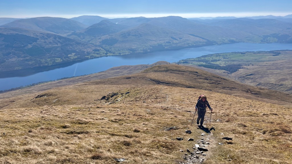 We quickly gained height, pausing occasionally to look back to Loch Tay, seeing how far we’d come.
