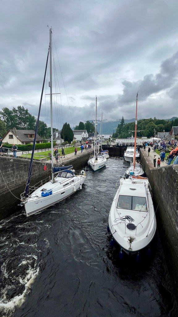 I LOVE Fort Augustus, with a fascination for the locks. Bruce definitely took one for the team here; while he’d happily watch a few boats go through one lock he has no inclination to be there for hourson end, unlike me.