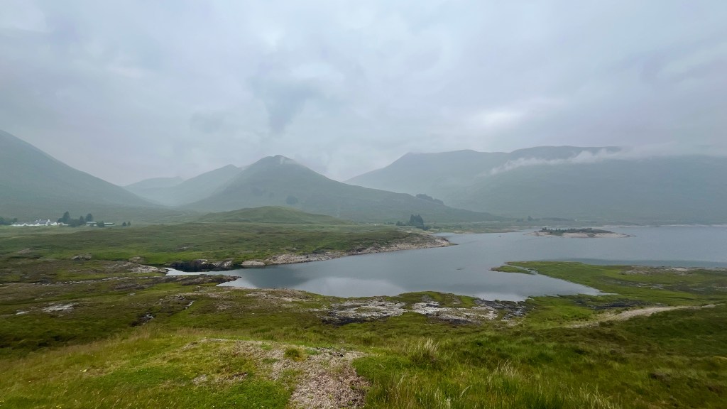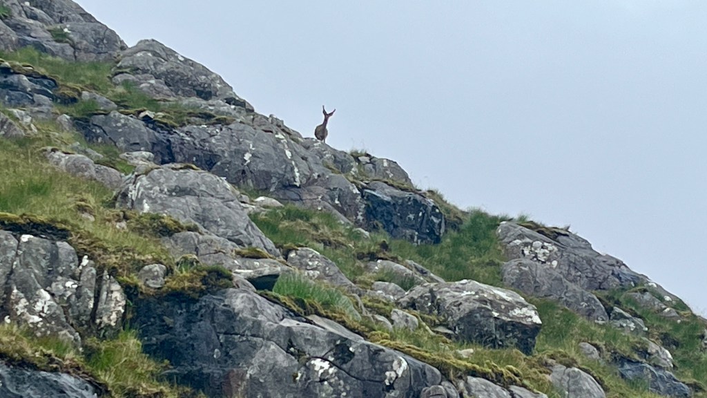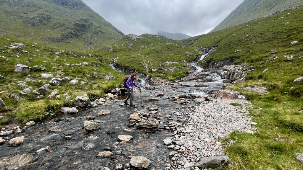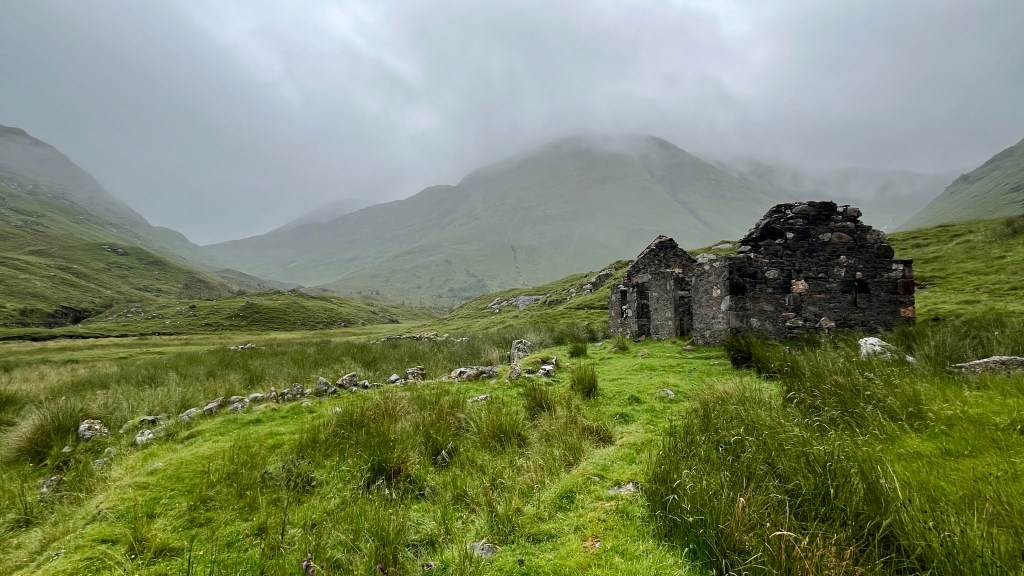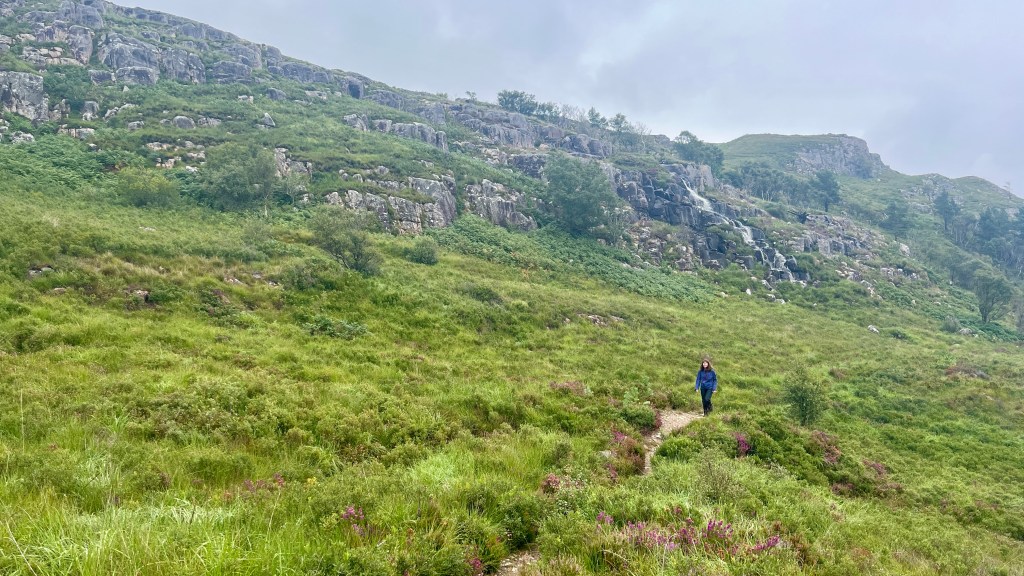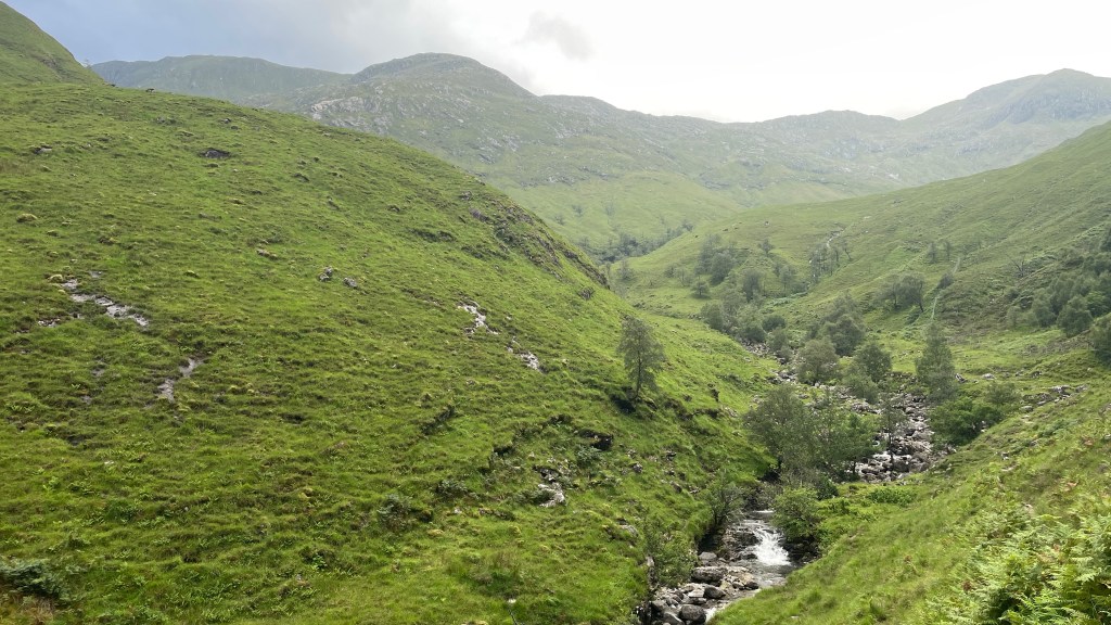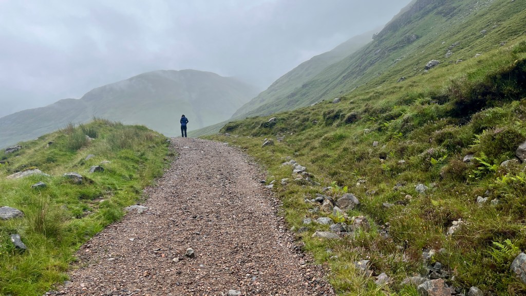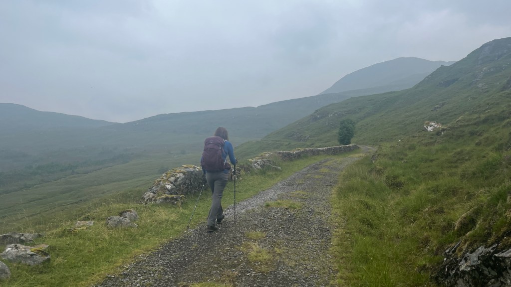 Our second day saw us walk up Gleann Lichd. It was a fine walk, atmospheric with the low hanging cloud. We carried a brolly just in case but found it to be more hassle than it was worth. The rainy spells didn’t get too bad, any precipitation being light rather than soaking.