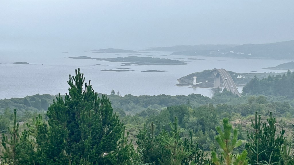 More low cloud the next day, we drove to Kyle of Lochalsh, caught the Citylink bus back to Balmacara, and then walked back.