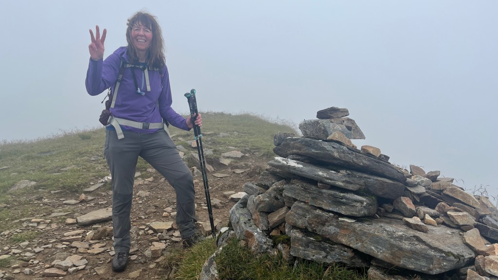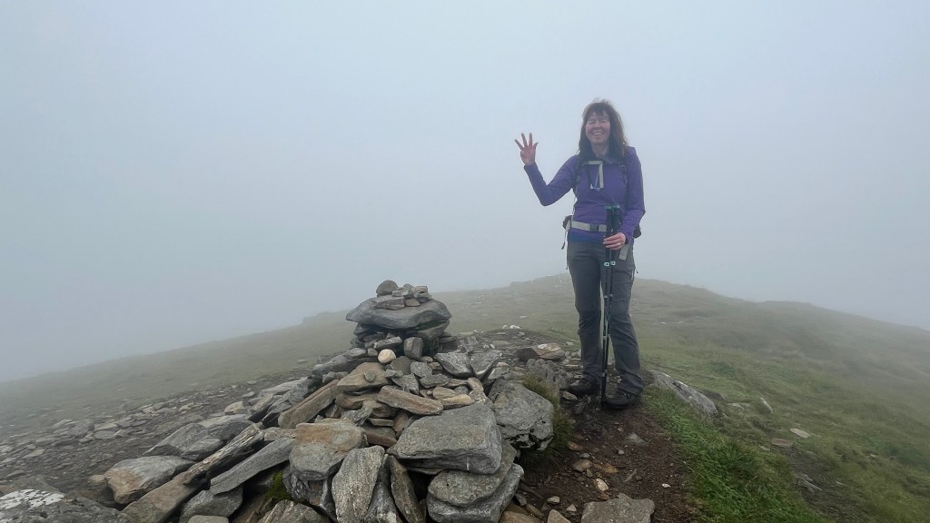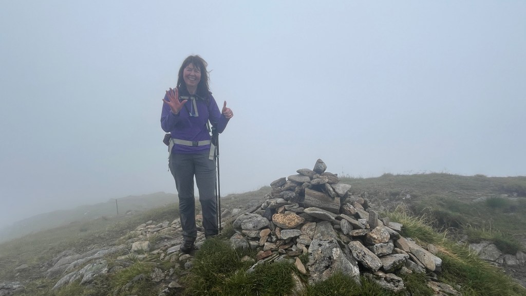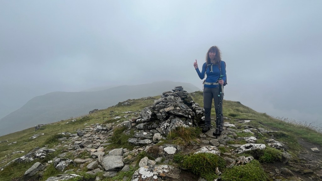Reading the route guide, I was relieved that there was nothing of concern ahead of the next summit, the only point of note being a few kilometres between them. At this point we were able to see some of the views as the cloud parted at times, wisps blowing and clearing in the gentle breeze.